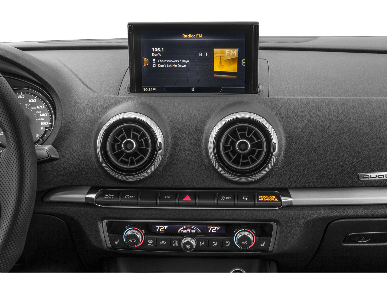- Radio: Audi Concert AM/FM/CD/SAT Player -inc: Audi sound system w/10 speakers, MP3 playback capability, HD Radio Technology, Audi smartphone interface (Apple CarPlay and Google Android Auto integration) w/2 USB ports, Audi sound system, preparation for mobile phone (Bluetooth®) w/streaming audio and Audi phone box w/wireless charging, signal booster and SiriusXM All Access w/3-month trial subscription
